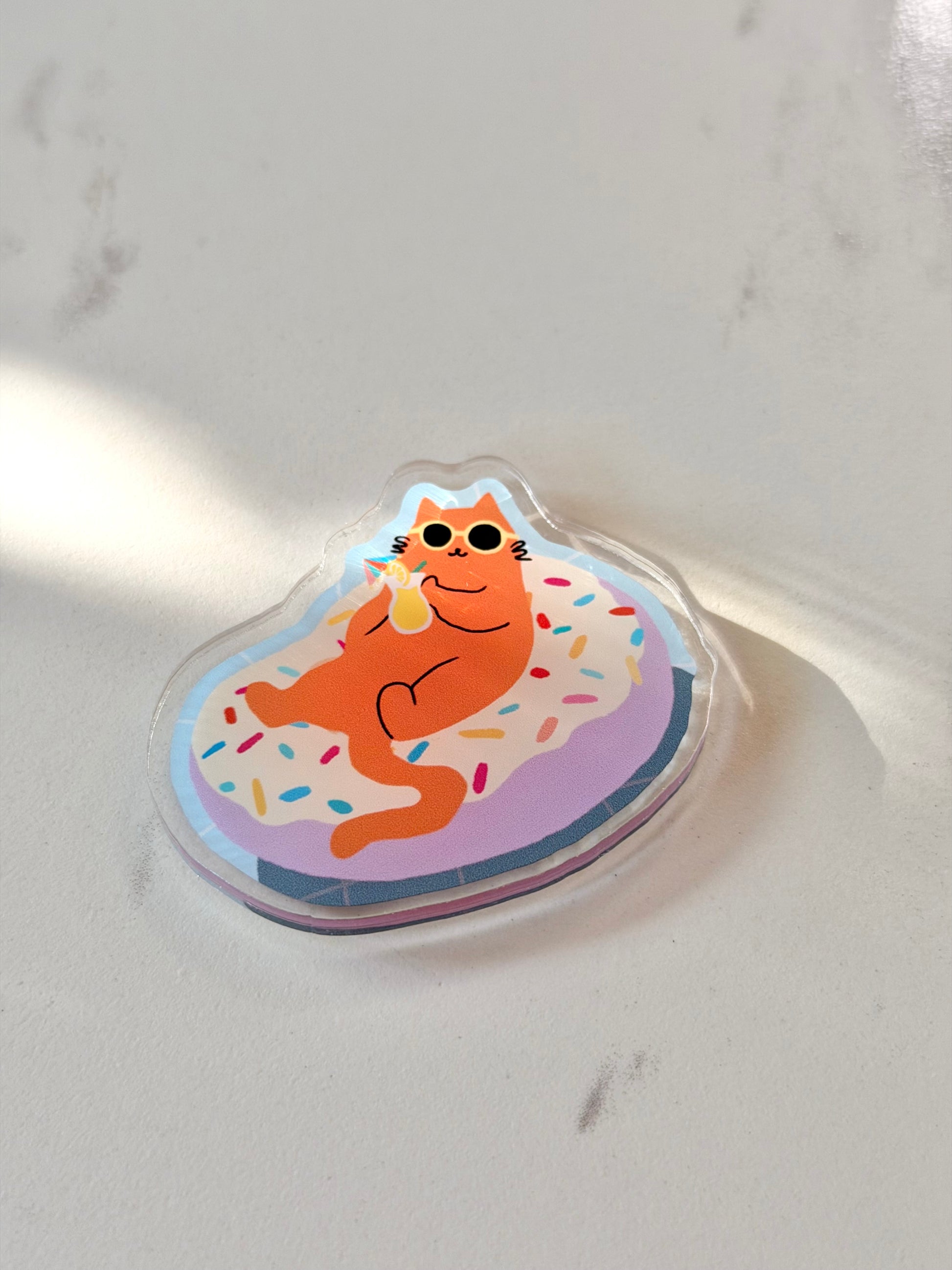 Bring a dose of sweet, carefree fun to your space with the “Just Donut Care” Fridge Magnet, featuring Milo the Beach Cat chilling on a frosted sprinkle donut. This vibrant, durable magnet adds a pop of color and personality to your fridge, office board, locker, or any magnetic surface.