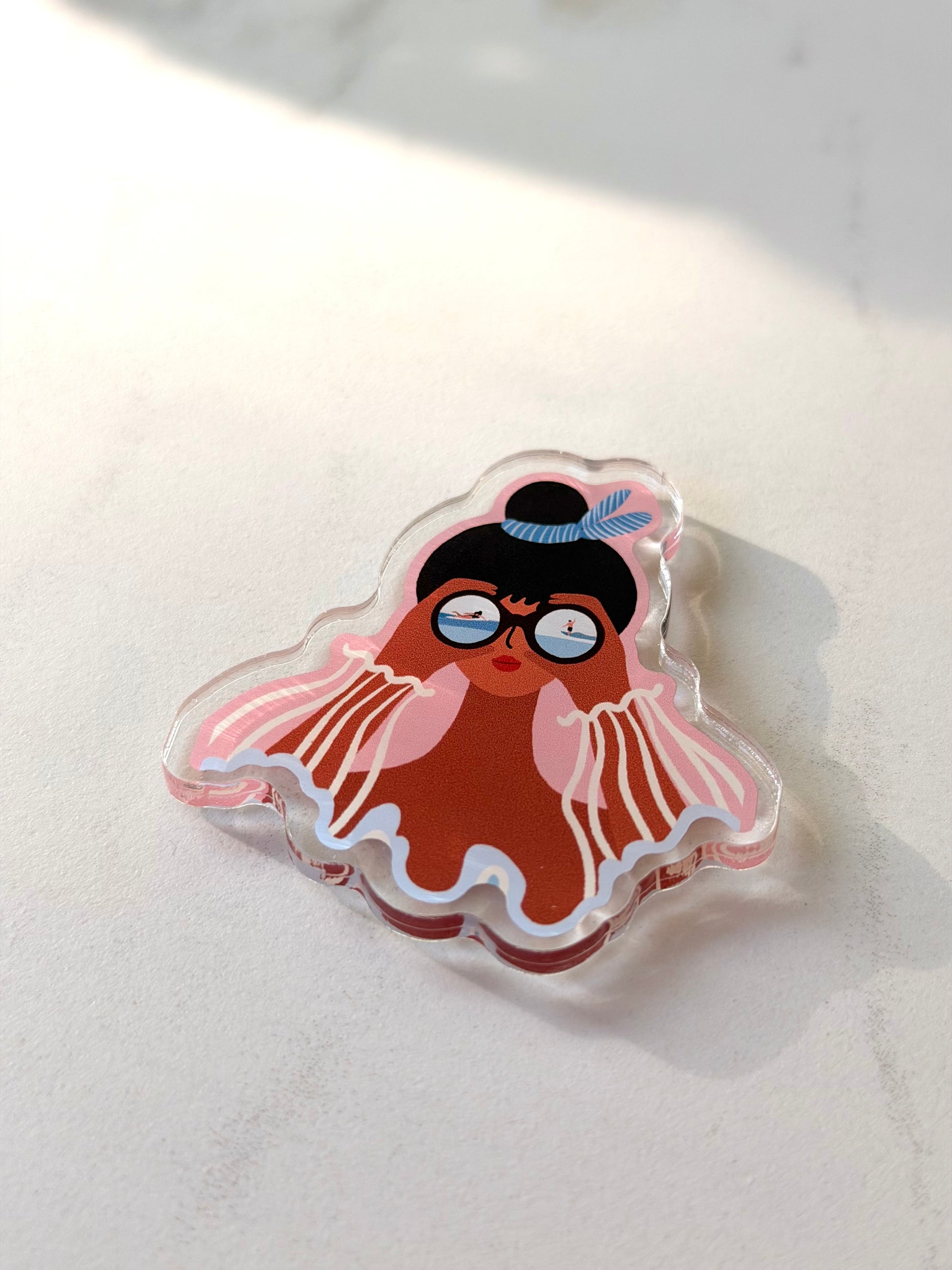 Bring a little island magic to your home with the “Sea What I See” Fridge Magnet, featuring a whimsical girl gazing into the ocean through oversized glasses. Inspired by the relaxed coastal lifestyle of Hawai‘i, this magnet adds a colorful, uplifting touch to your fridge, office, whiteboard, or workspace.
