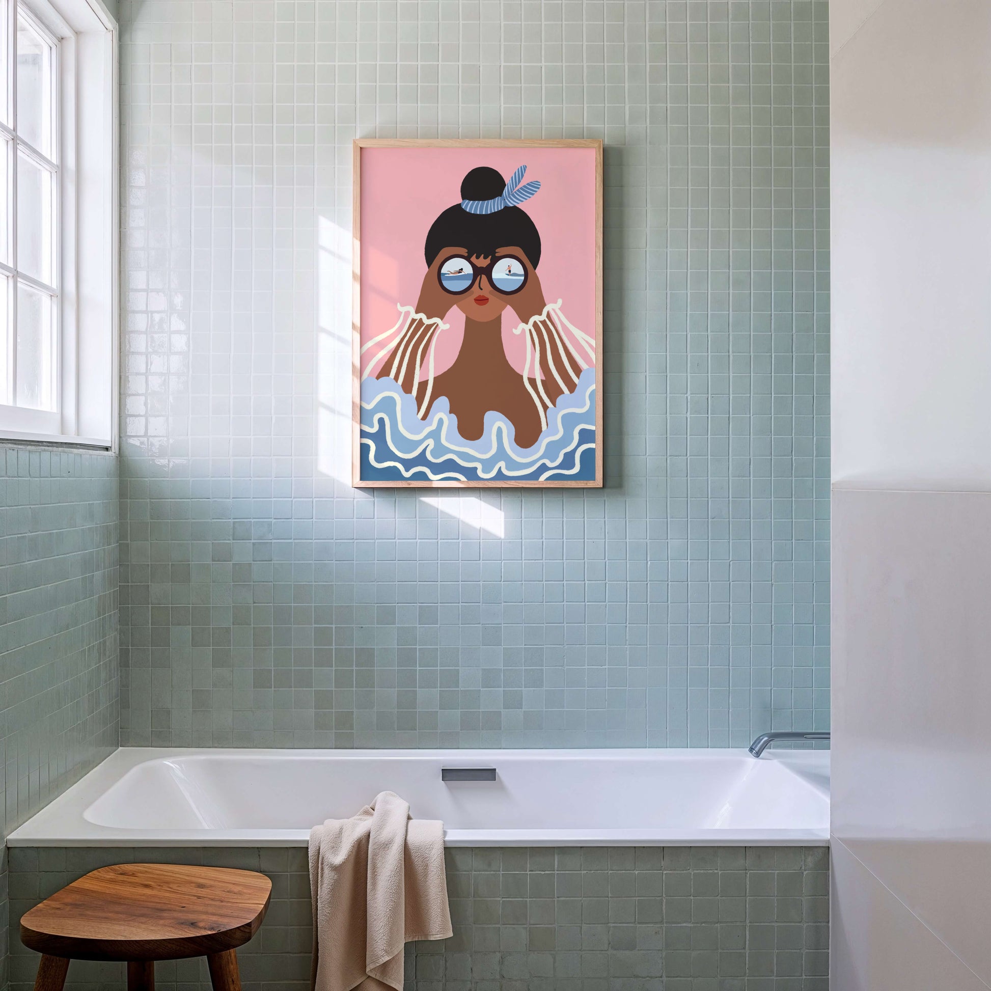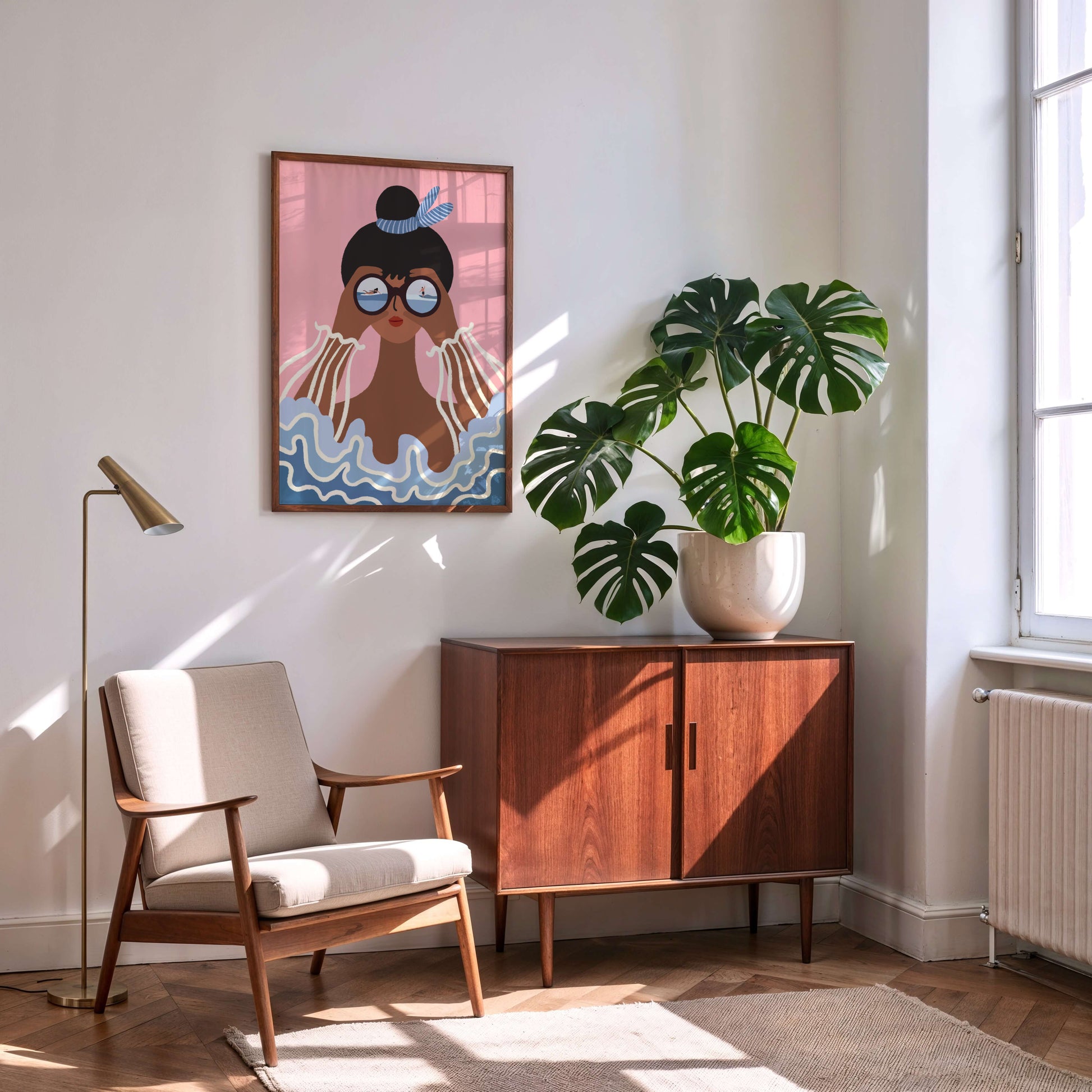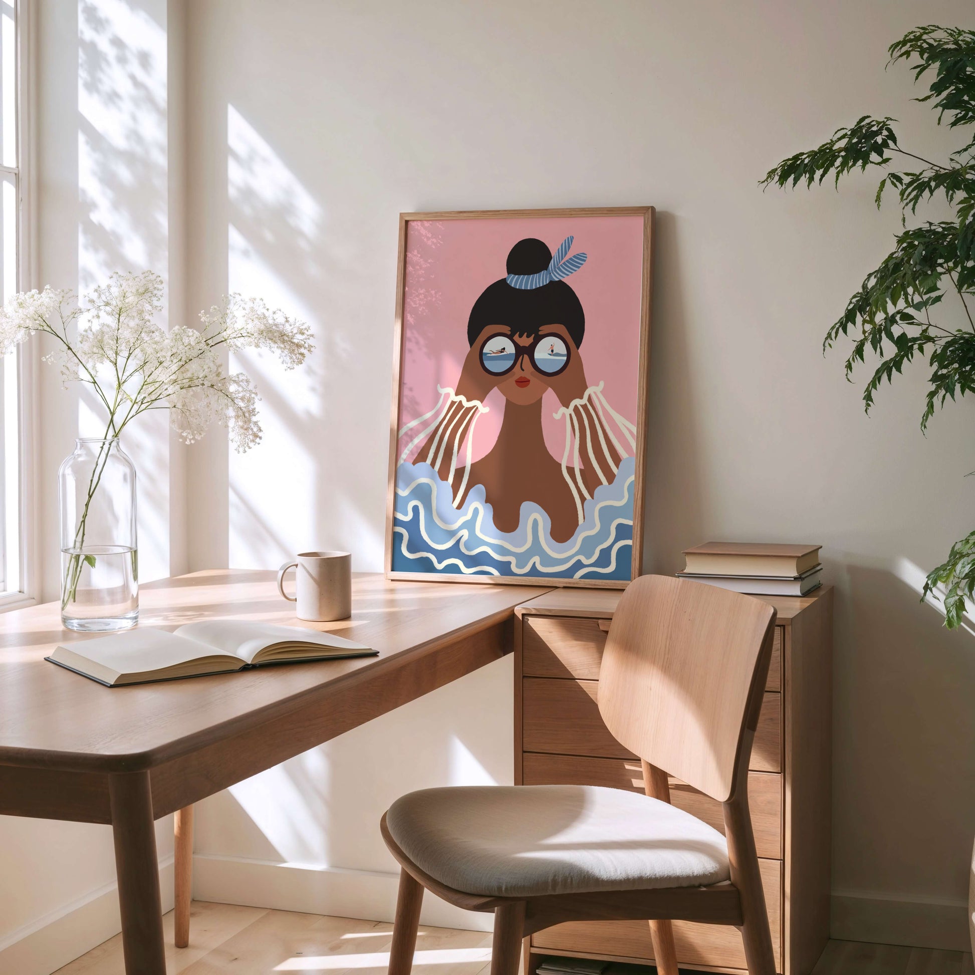 The giclée print is printed on high-quality glossy photo paper and mounted in a thick white matte and sealed in an archival bag. All sizes are standard sizes and can fit in standard pre-made frames (frame is not included with order).
