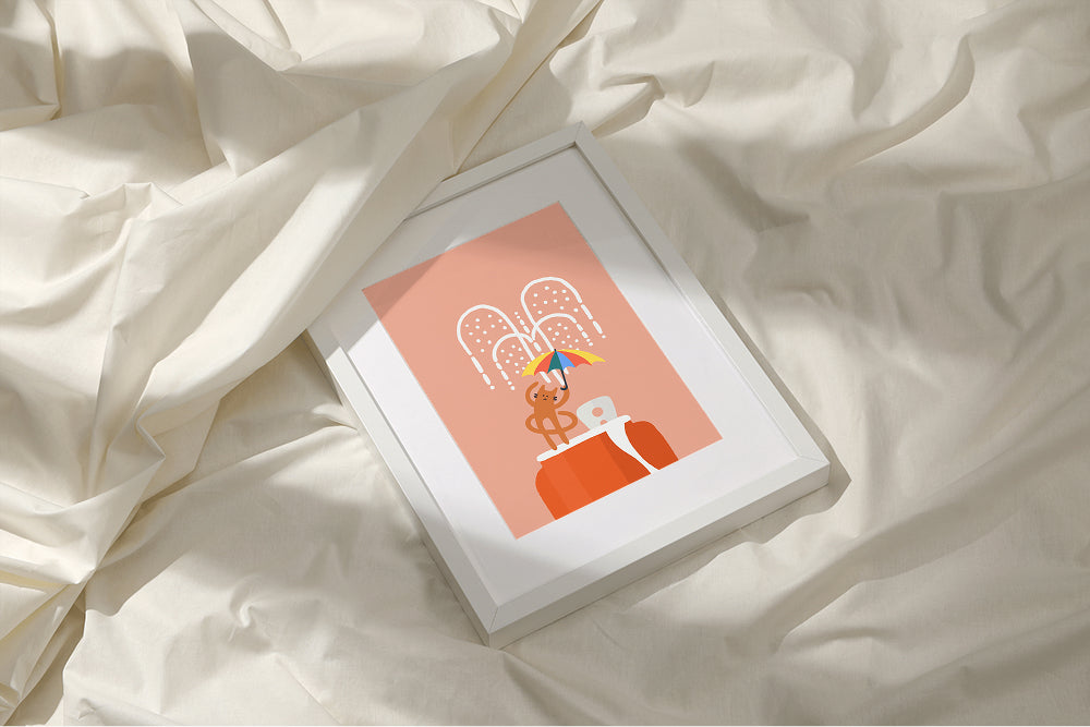 The giclée print is printed on high-quality glossy photo paper and mounted in a thick white matte and sealed in an archival bag. All sizes are standard sizes and can fit in standard pre-made frames (frame is not included with order).