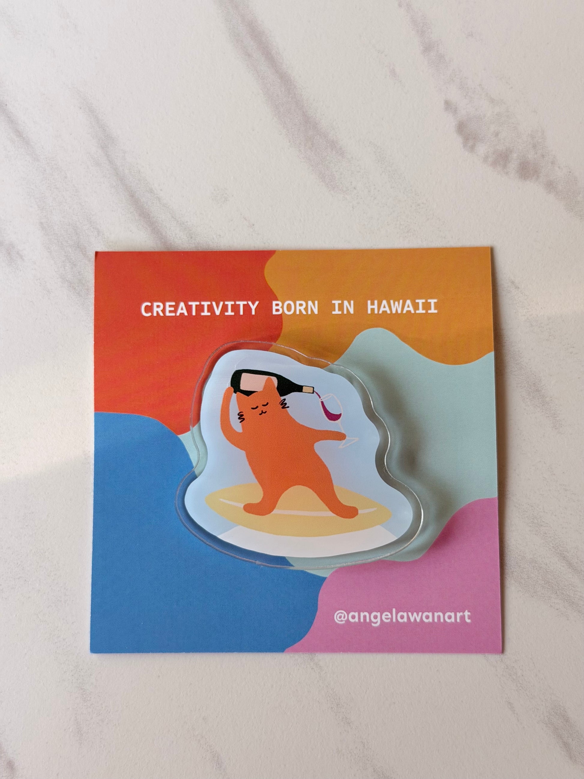 Ride the wave of good vibes with the “Surfing Cat” Fridge Magnet, featuring Milo the Beach Cat showing off her confident surf stance. This vibrant, durable magnet brings a splash of island energy to your fridge, office board, locker, or any magnetic surface.