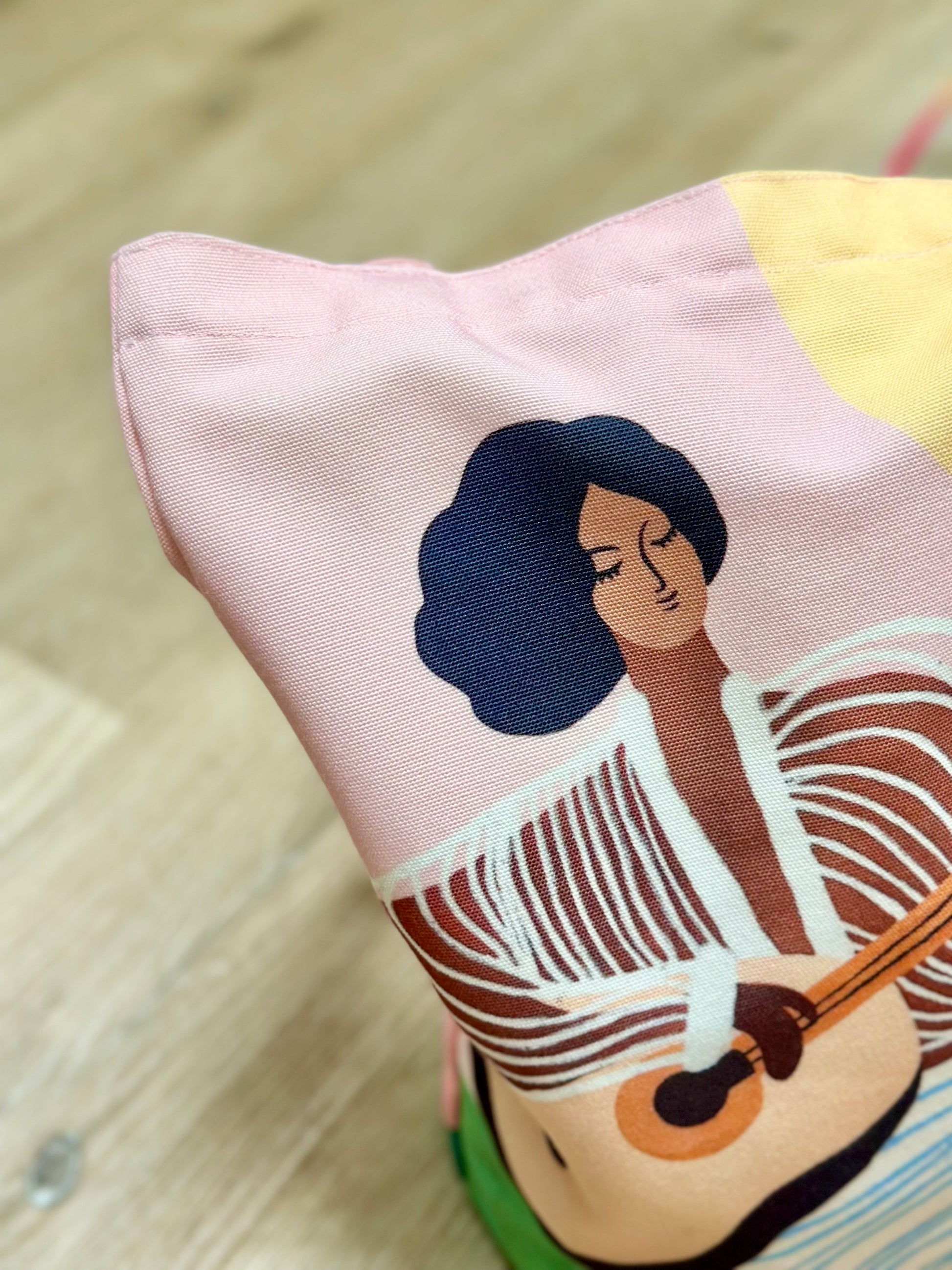 This charming tote bag features Ukulele Girl, a carefree spirit strumming her ukulele under the warm sun. Surrounded by a relaxed, tropical vibe, she enjoys the music and the moment, embodying pure bliss and island serenity. Perfect for those who love music, sunshine, and the art of slowing down.